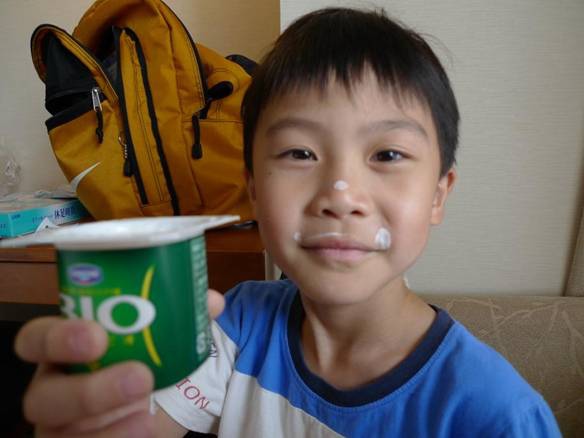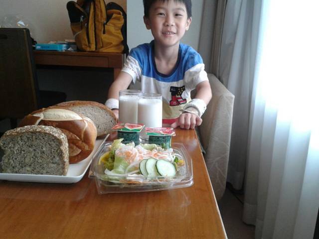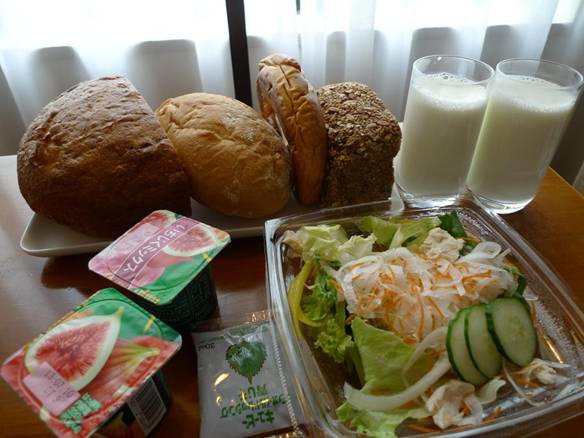 在東武超市買的麵包、沙拉、優格當早餐, 還配日本鮮乳哦!